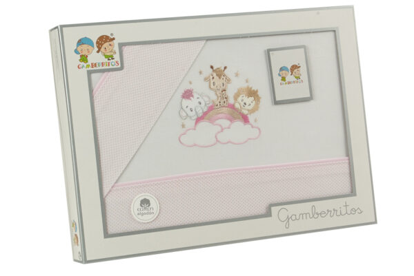 GAMBERRITOS Комплект летни чаршафи, 3 части за легло 60х120см. Животни, розово