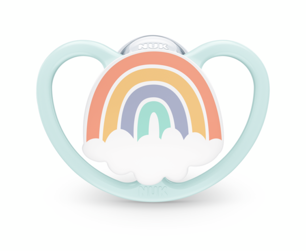 NUK биберон залъгалка силикон 0-6 мес. 1бр Space + box- Дъга