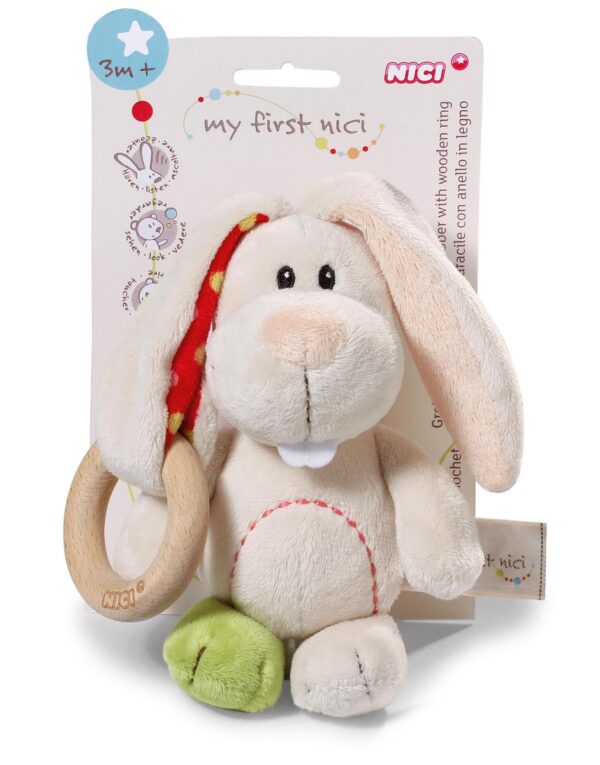 NICI Играчка Заекът Тили с дървен ринг, 15см. 3+ мес.