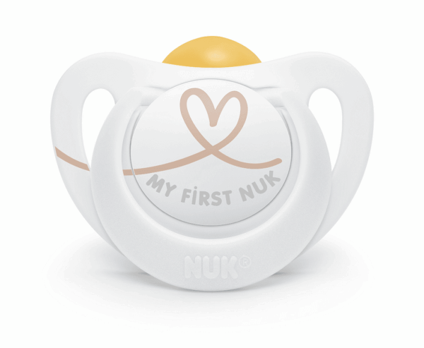 NUK биберон залъгалка каучук 0-6мес. 1бр. STAR + box – Бяло със сърце