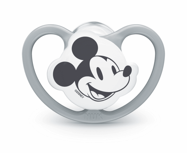 NUK биберон залъгалка силикон 6-18 мес. 1бр Space Mickey+ box – Сив