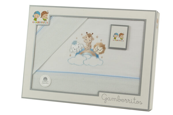 GAMBERRITOS Комплект летни чаршафи, 3 части за легло 60х120см. Животни, син