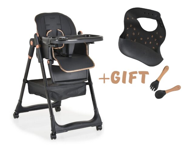 Детски стол за хранене с подарък Lindo черен