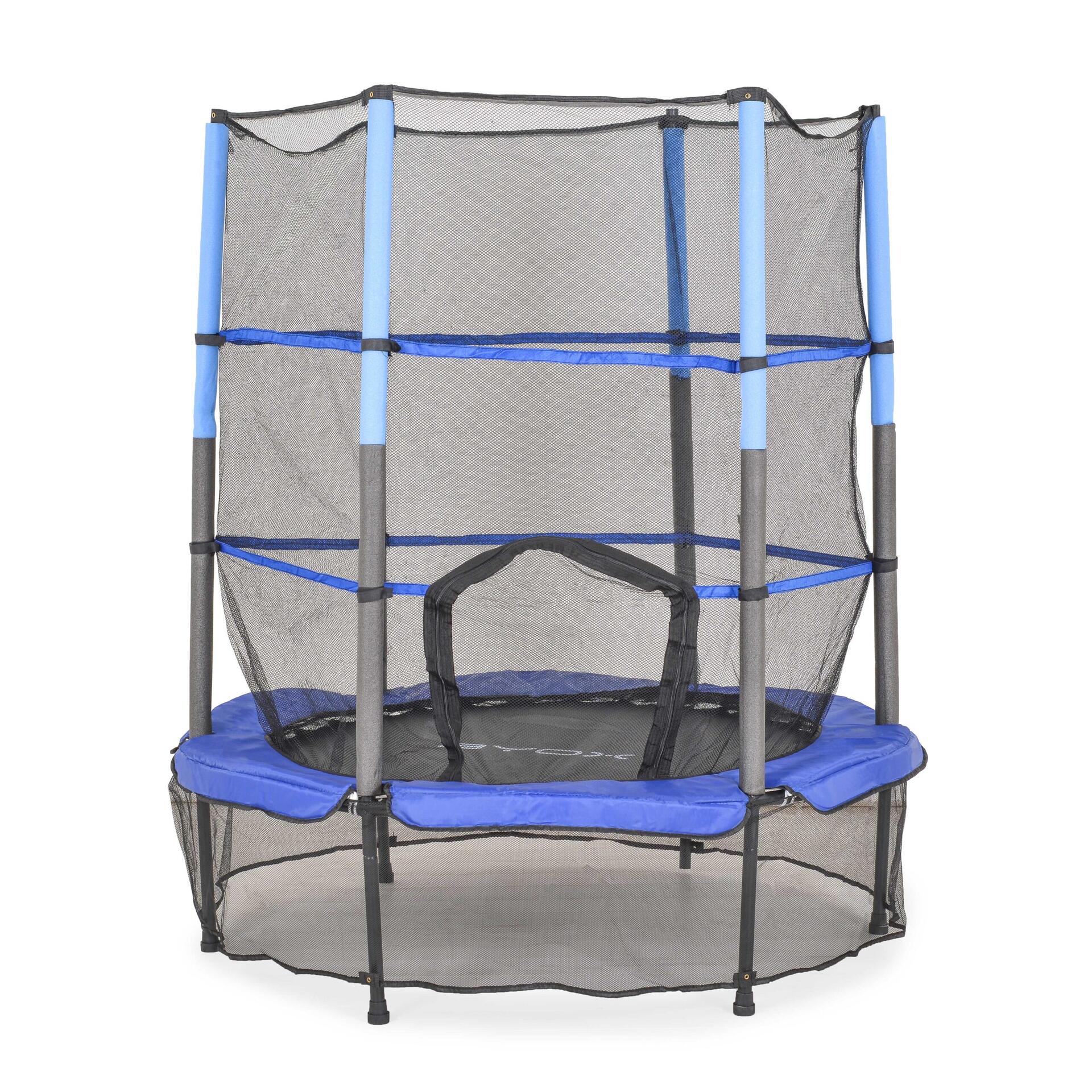 Батутът е с диаметър 140 см, височина от повърхността до батута – 35 см и височина на мрежата 125 см.
