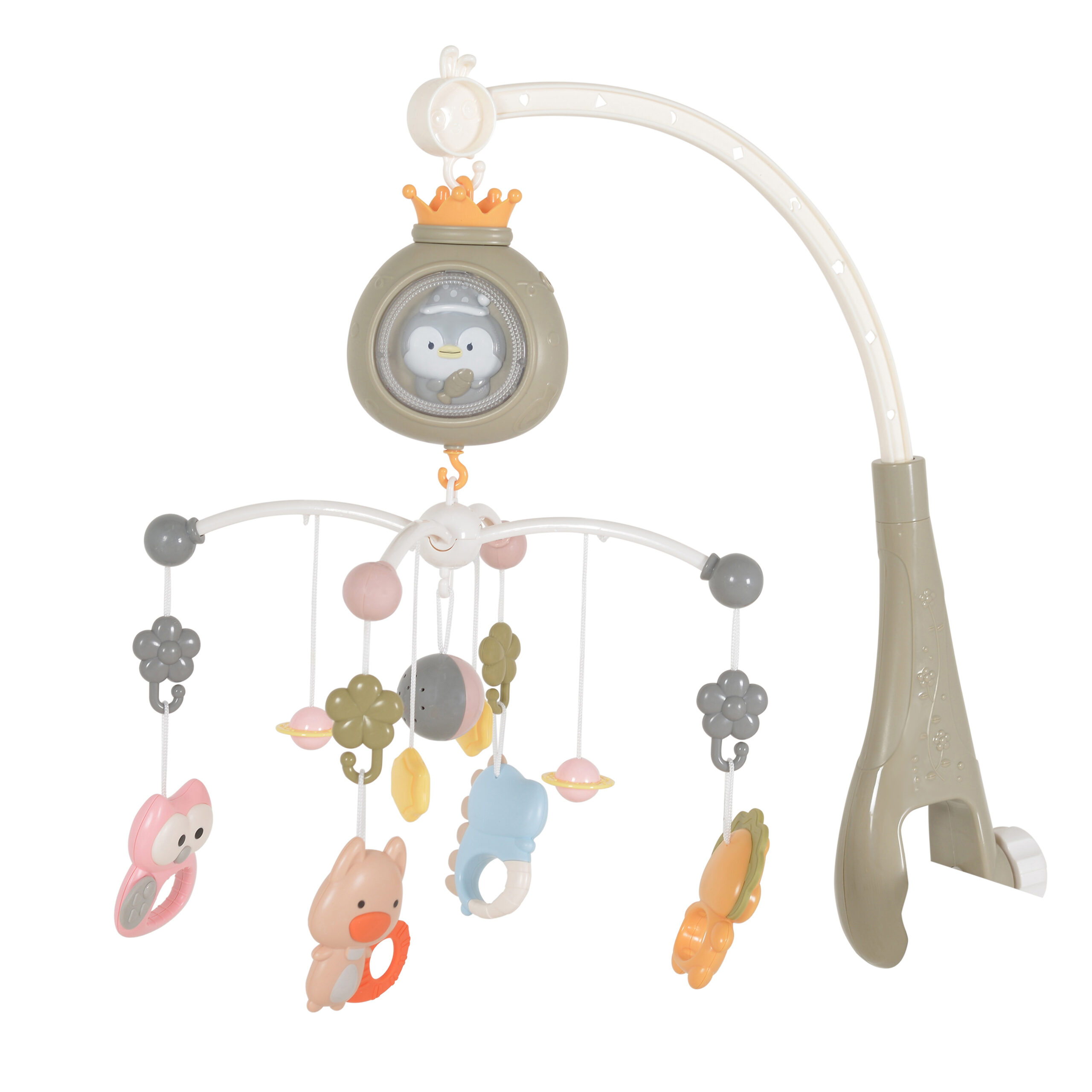 Музикалната въртележка „Пингвин“ от Moni Toys е мултифункционална бебешка играчка, създадена да успокоява, забавлява и стимулира сетивата на вашето бебе още от първите дни. Тя комбинира нежни мелодии, бял шум, мека светлина и цветна проекция за по-спокоен сън.