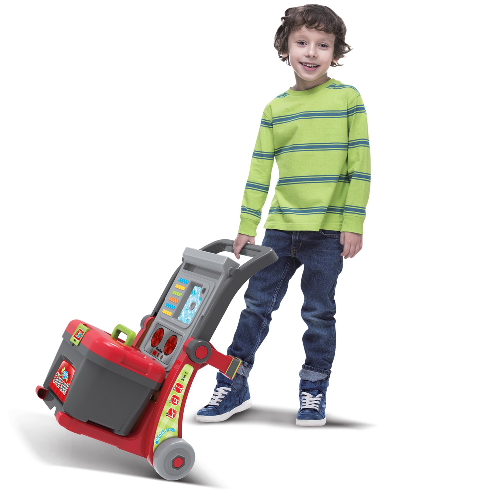 Представяме ви невероятната детска кухня 3 в 1. Комплектът е направен в меки пастелни цветове, той ще бъде подходящ както за момичета, така и за момчета. Ако детето ви се чуди как се приготвят всички домашни вкусотии, сега е момента да разбере как се случва магията в кухнята. Ако детето ви мечтае да стане готвач, детската кухня ще му помогне да играе тази роля. Кухнята е на колела, така че можете да я движите свободно от място на място. Удобна дръжка за носене отзад. На готварския плот има два странични рафта, на които можете да поставите продукти за готвене или да измиете и посудата. Куфарът има удобна дръжка за носене. Лесен монтаж и демонтаж, инструкции за монтаж на опаковката.