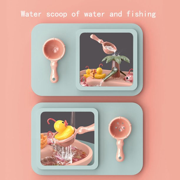 Поставете батерията, напълнете вода, натиснете бутона – започва да се върти. Патетата ще започнат да се движат наоколо, увеличавайки трудността на играта. Ако ще ви е по-лесно – използвайте лъжичката с дупки, а пък с другата си направете забавен водопад!