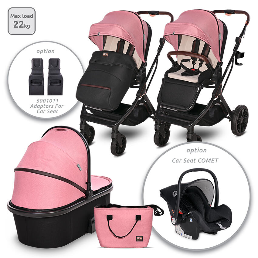 подвижна поставка за крачета,амортисьори на задните колела,реверсивна седалка,размери,чанта за аксесоари,алуминиева конструкция,прозорче с капаче на сенника,мека подложка за тялото,голям кош за пазаруване,завиващи предни колела с възможност за застопоряване,Антирефлуксна система,регулируем гръб – 3 позиции,покривало,5-точков предпазен колан,гриф: ЕКО кожа,дръжка: ЕКО кожа,поставка за чаша,размери,Износоустойчиви гуми,Регулируем сенник с козирка и разширяема зона,Задни колела със синхронизирана спирачка,Опция: столче за кола ARIA LUXE (адапторите са включени в комплекта)///
