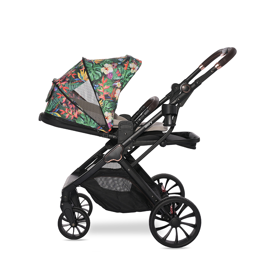 подвижна поставка за крачета,амортисьори на задните колела,реверсивна седалка,размери,чанта за аксесоари,алуминиева конструкция,прозорче с капаче на сенника,мека подложка за тялото,голям кош за пазаруване,завиващи предни колела с възможност за застопоряване,Антирефлуксна система,регулируем гръб – 3 позиции,покривало,5-точков предпазен колан,гриф: ЕКО кожа,дръжка: ЕКО кожа,поставка за чаша,размери,Износоустойчиви гуми,Регулируем сенник с козирка и разширяема зона,Задни колела със синхронизирана спирачка,Опция: столче за кола ARIA LUXE (адапторите са включени в комплекта)///