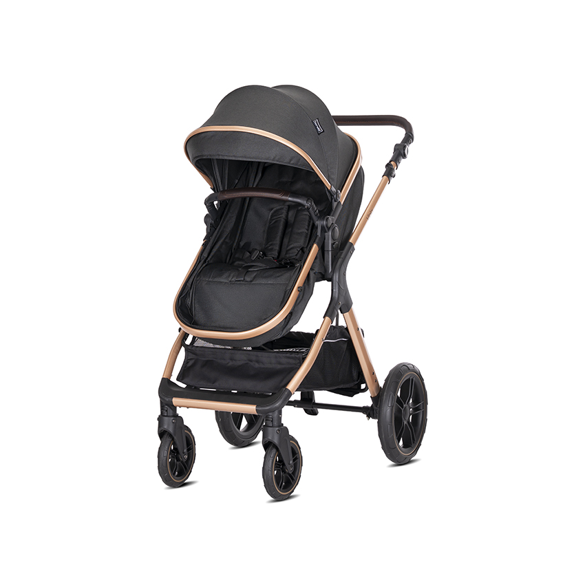 чанта за аксесоари,сгъваем сенник с козирка,поставка за аксесоари на дръжката,отстраняем гриф,завиващи предни колела,кош за новородено, трансформиращ се в седалка,мека подложка за тялото,столче за кола,спирачка на задните колела,адаптори за столче за кола,покривало,реверсивна седалка,регулиране на дръжката,5-точков предпазен колан,голям кош за пазаруване,гриф: ЕКО кожа,дръжка: ЕКО кожа,сгъваема до компактни размери заедно с трансформиращия се кош///