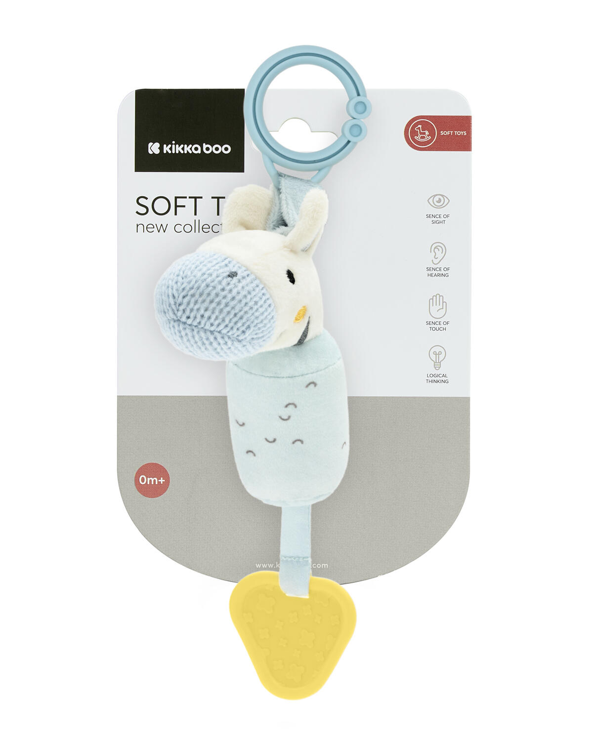 • Мека играчка с дрънкалка-звънче и цветна гризалка;