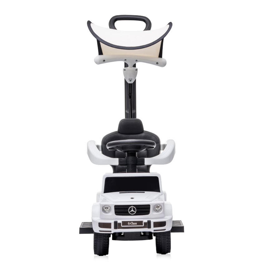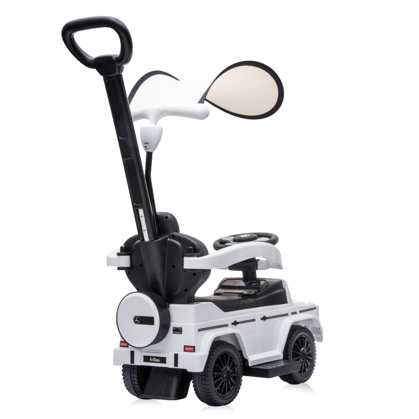 четири големи и широки колела,родителски контрол, който контролира колелата,сенник,удобна седалка с облегалка, отделение за играчки под седалката,степенка,стопер против преобръщане,батерии 2*АА 1.5V (не са включени),волан за управление със звук на клаксон и звук на двигател///
