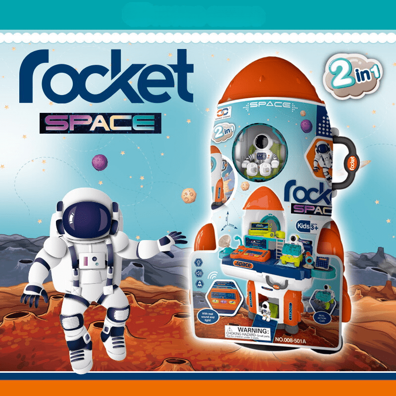 Това е комплект от космическа ракета със звуци и светлини и оборудвана ръководна кабина на космически кораб. Където на масата са разположени всички необходими устройства за да се впуснете в космически изследвания и разходки. Ракетата е с височина 42 см и разбира се, разполага с професионални астронавти. Марсоходи, работни пултове и телескоп, са част от оборудването за космическите изследвания. Работната маса с уредите в сглобен вид е 53 (вис.) х 49 х 19,5 см.