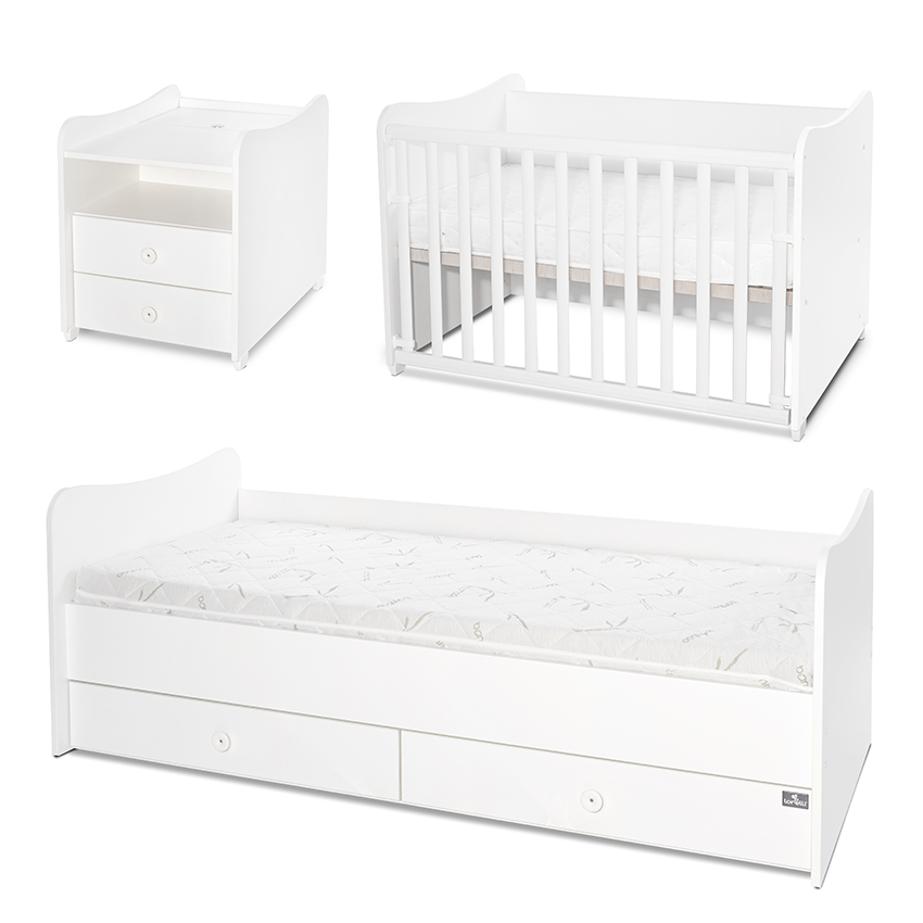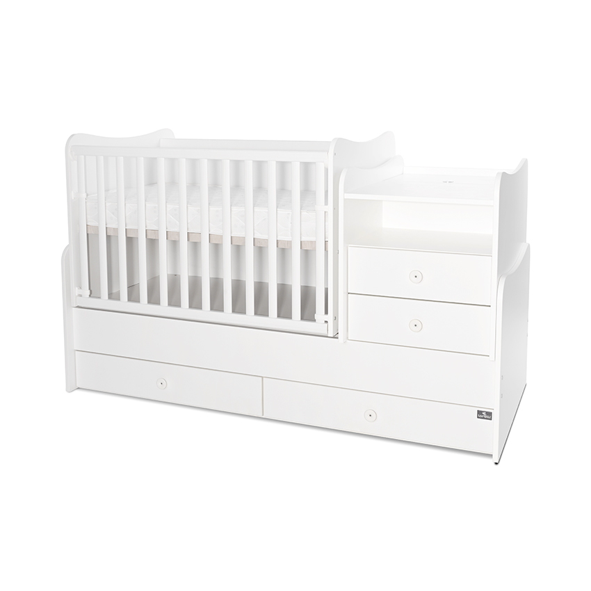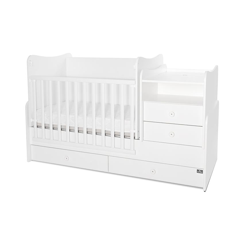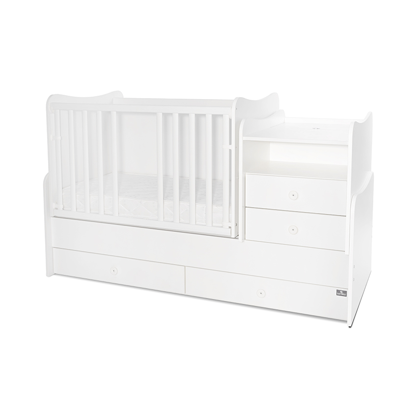 Бебешко легло-люлка,Леглото може да се трансформира в: Вариант А,Леглото може да се трансформира в: Вариант В,произведен от 18мм ламинирано ПДЧ /melamine chipboard/ с високо качество,отговаря на всички европейски стандарти за безопасност,висококачествена сглобка за лесен и бърз монтаж,подробна инструкция за сглобяване стъпка по стъпка///