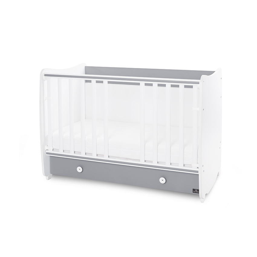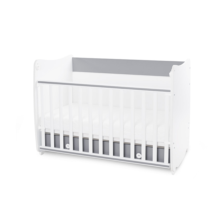 голямо чекмедже,предназначено за матрак 120х60х12 см или 140х70х12 см (матракът не е включен в комплекта),ПВЦ асансьорна решетка с 2 нива и автоматично фиксиране в горно положение,2 нива на подматрачната рамка,може да се трансформира в: бебешко легло-люлка; детско легло; ученическо бюро,произведен от 18мм ламинирано ПДЧ /melamine chipboard/ с високо качество,отговаря на всички европейски стандарти за безопасност,висококачествена сглобка за лесен и бърз монтаж,подробна инструкция за сглобяване стъпка по стъпка,легло-люлка///