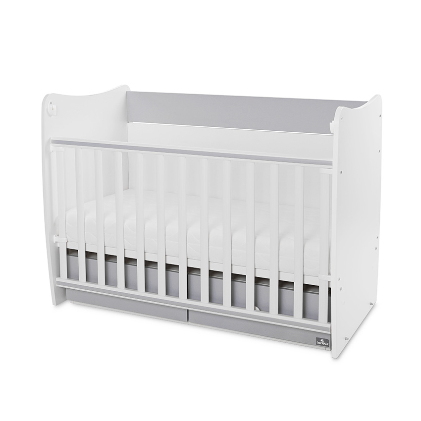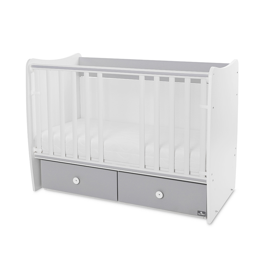 ПВЦ асансьорна решетка с 2 нива и автоматично фиксиране в горно положение,2 нива на подматрачната рамка,бебешко легло-люлка с външни размери 126х74х93 см,предназначено за матрак 120х60х12 см (max.) /матракът не е включен в комплекта/,2 големи чекмеджета,стабилно застопоряване на люлката,леглото може да се трансформира в детско легло,произведен от 18мм ламинирано ПДЧ /melamine chipboard/ с високо качество,отговаря на всички европейски стандарти за безопасност,висококачествена сглобка за лесен и бърз монтаж,подробна инструкция за сглобяване стъпка по стъпка///