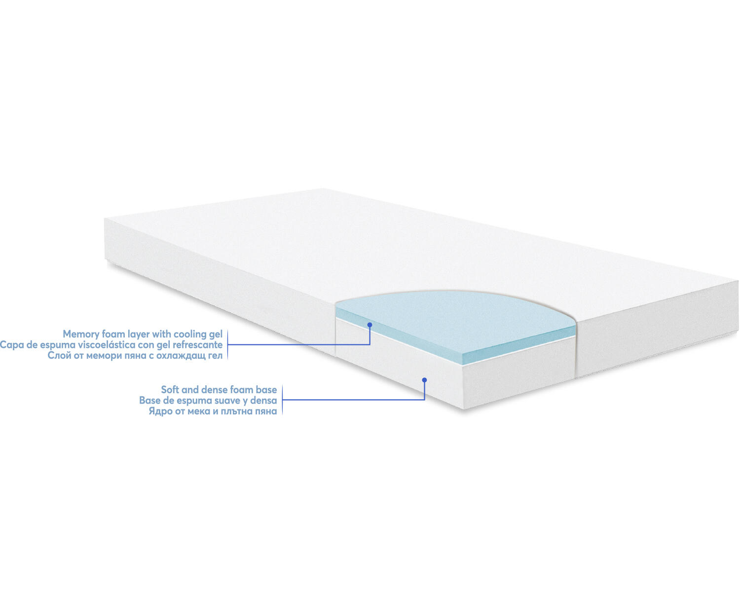 • Пълнеж: полиуретанова пяна, мемори пяна с охлаждащ гел;