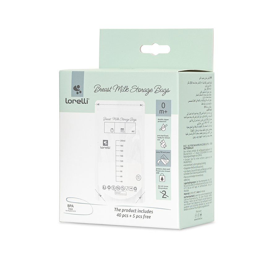 45 плика за съхранение,Капацитет: 200 мл,Осигуряват безопасно съхранение на кърмата,Предварително стерилизирани, готови за директна употреба,Защита с двоен цип,За проследяване на име, дата/час и количество, пишете в съответното поле,Само за еднократна употреба///