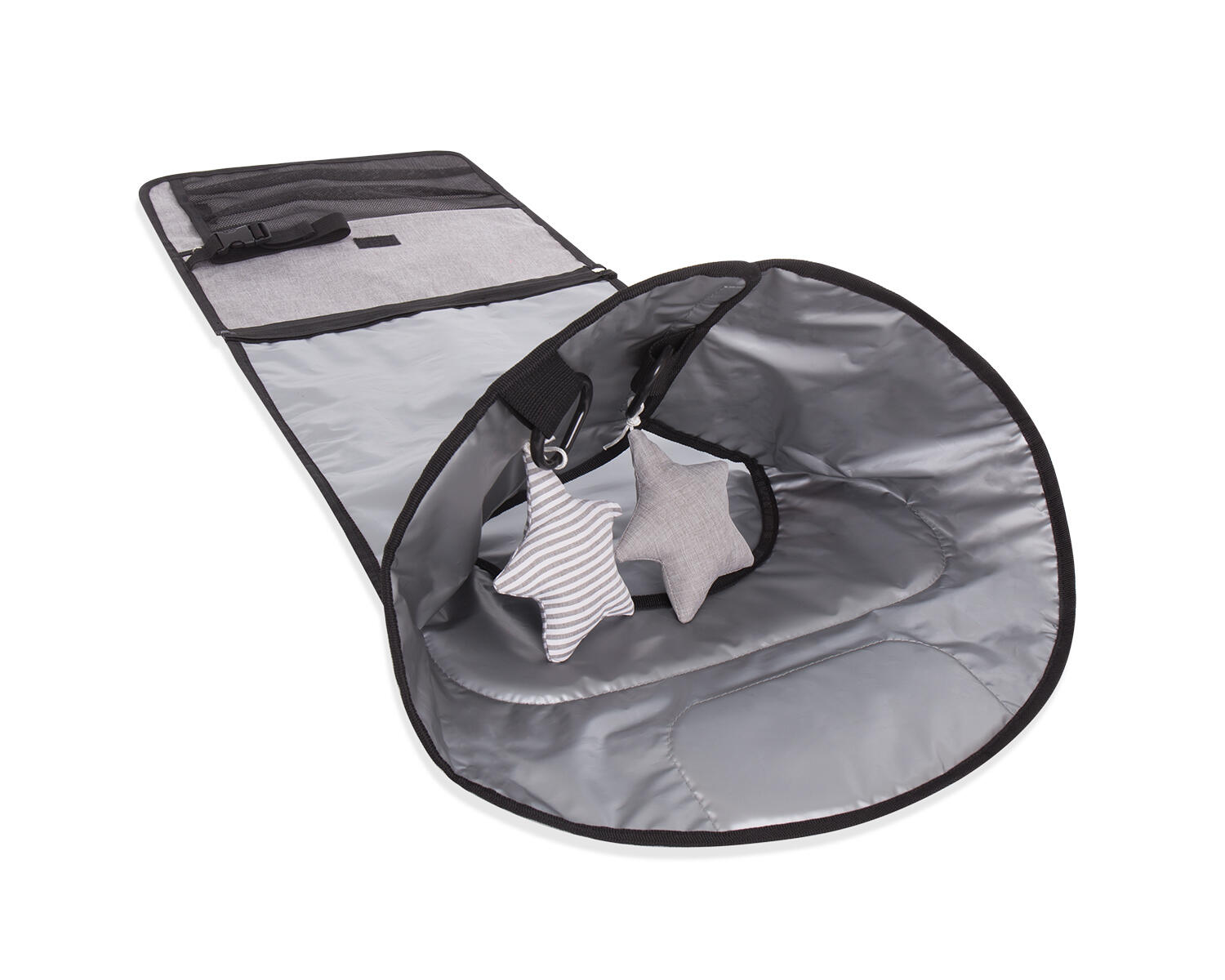 • Мека преграда с халки за играчки, която нежно ограничава движенията на бебето и го забавлява докато сменяте памперса;