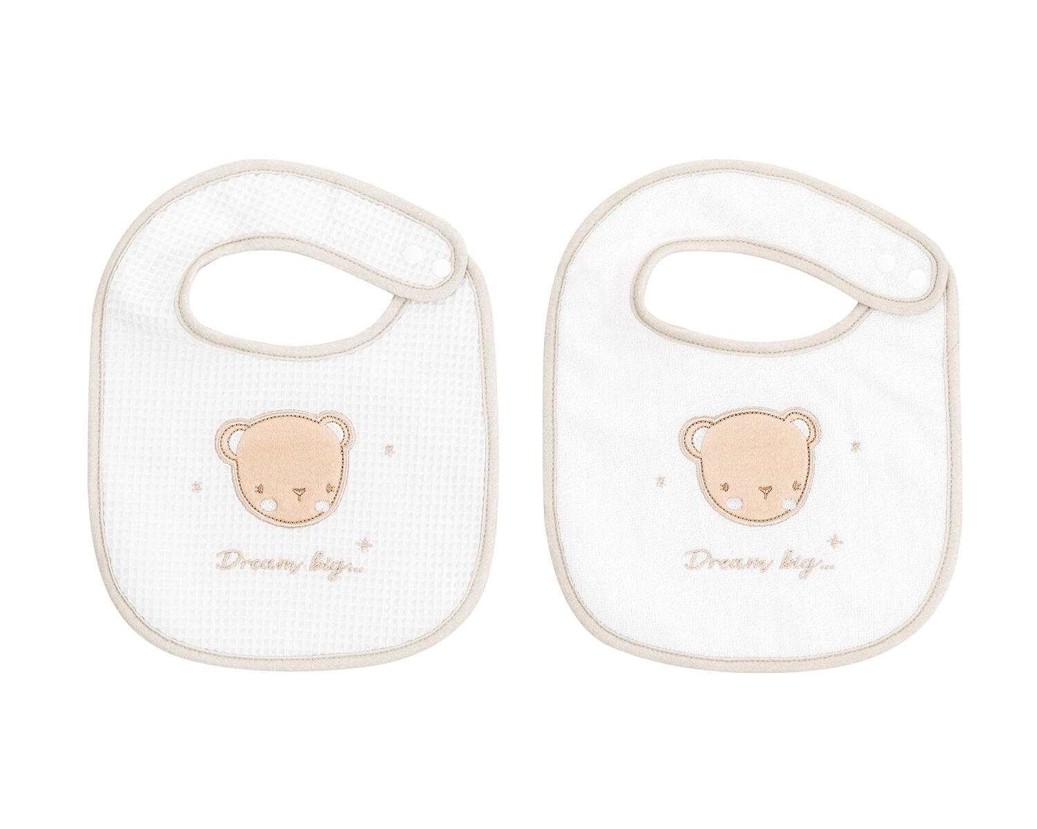 • Нежен сет от 2бр бебешки лигавници, изработени от изключително меки 100% памучни материи – хавлия и луксозно пике;