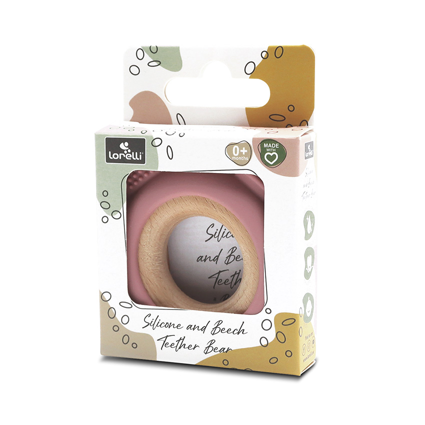 Изработена от силикон и букова дървесина. Перфектна за масажиране на нежните венци на бебето в периодa на растеж на млечните зъбки. Леснa за хващане.