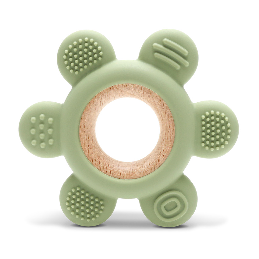 Лесно за почистване,Без BPA и фталат,Може да се стерилизира и мие в съдомиялна, както и да се нагрява до 220 °C.,Удобна за хващане форма,нежни цветове,Носи на вашето бебче успокоение на сърбящите венци.,Има възможност за дъвчене на дървената част при нужда от по-твърда повърхност при избиване на зъбките.///