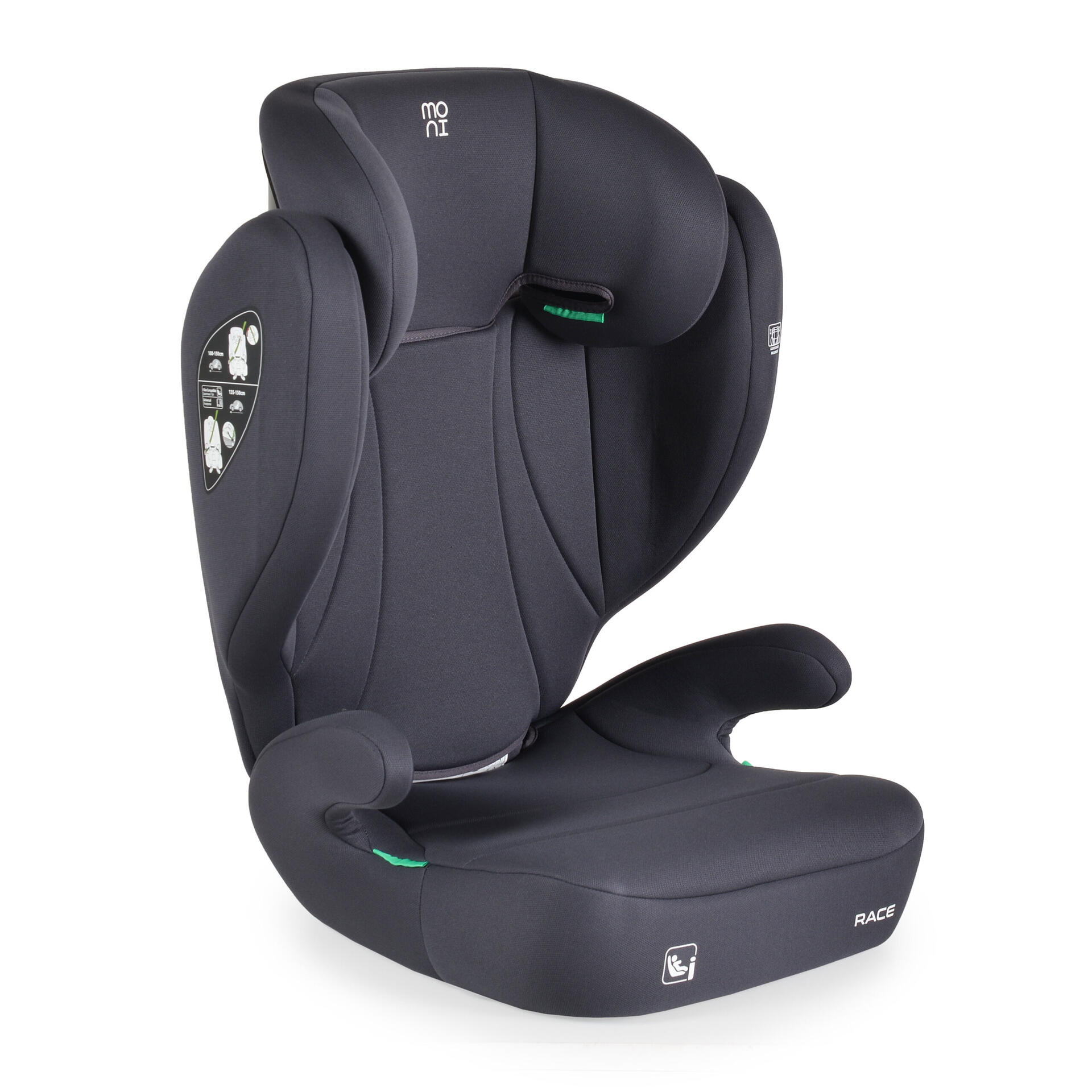Столът за кола Race от Moni е предназначен за деца с височина от 100 до 150 см и е разработен съгласно най-новия стандарт за безопасност R129/i-Size. Създаден да расте заедно с детето, той предлага сигурност, функционалност и лесна трансформация от стол с облегалка в повдигаща седалка.