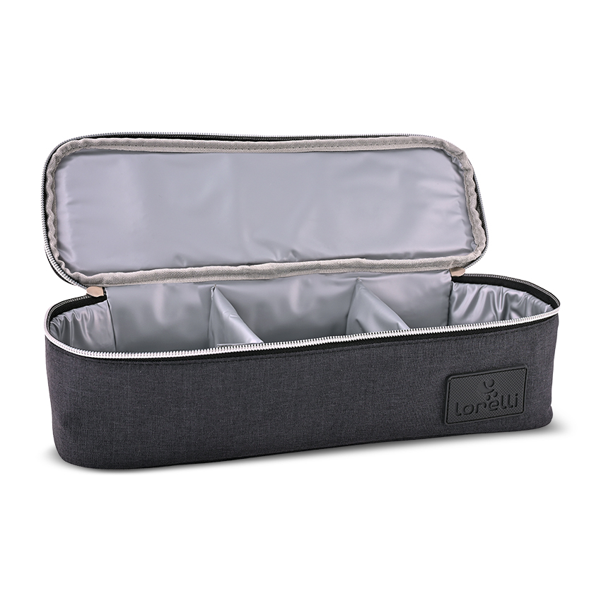 дръжка за носене,Задържа температурата на храната,Вместимост: 3 бурканчета x 300мл,Моделът разполага с подвижен разделител,Размер на чантата 33x11x10cм,Ципът позволява чантата да се отвори широко за удобство на родителя,Вместимост: 3 контейнера за храна х 250мл. /арт. номер: 1023063/,Вместимост: 2 контейнера за храна х 500мл. /арт. номер: 1023062////