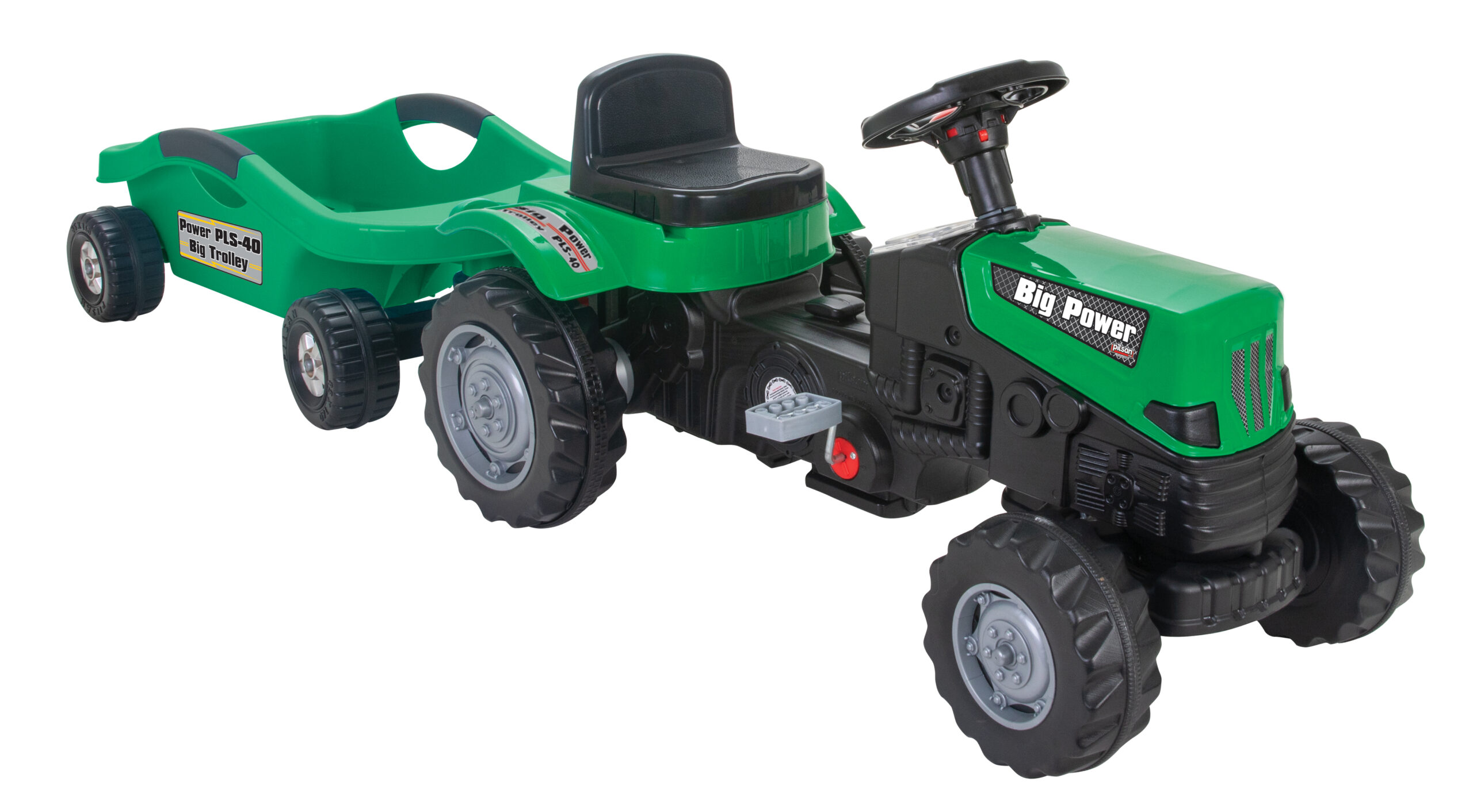 Тракторът е идеален за часове активна игра на открито и е изработен от безопасни материали, съответстващи на всички европейски стандарти за безопасност.