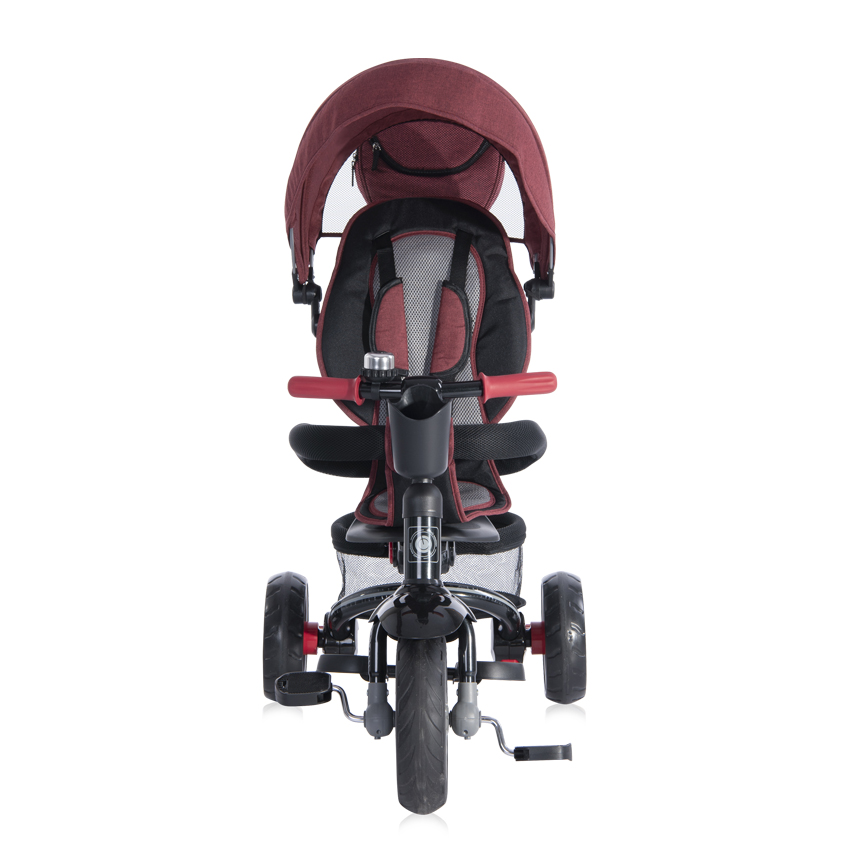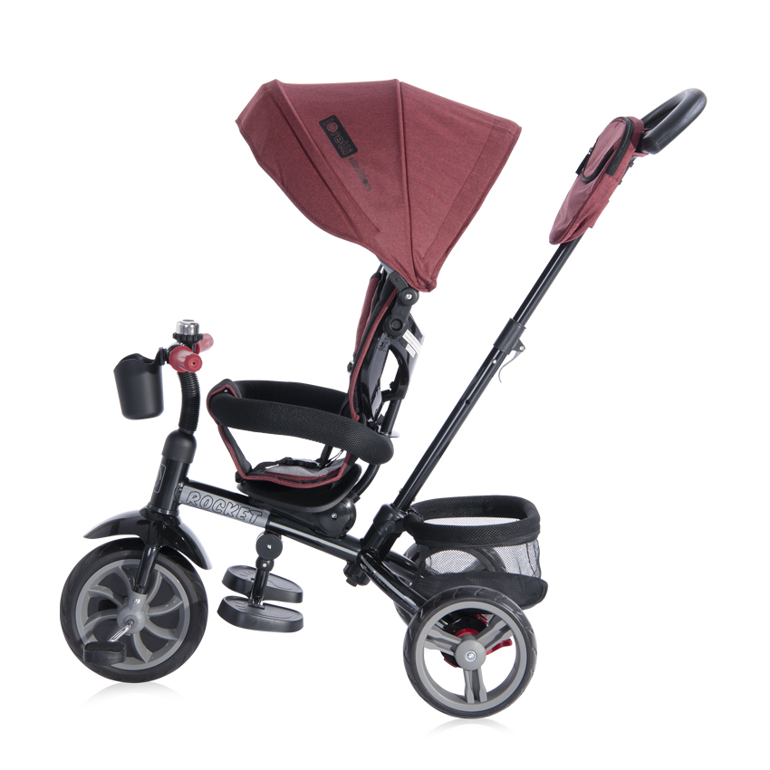 сенник,звънец,предпазен гриф,мека седалка,чанта,спирачки на задните колела,тапицирана облегалка,педали,текстилен багажник,поставка за крачета за по-малки деца,позиция: с гръб към родителя,позиция: родителски контрол,пластмасова поставка за чаша или шише,предпазни колани,Скрит вътрешен механизъм за родителски контрол на предното колело,функция „Баланс-колело“,функция „Триколка“ с облегалка за гърба,2 степени на регулация на родителската дръжка,отстраняема тапицерия за лесно почистване,триколка – колело,баланс колело,дъждобран за триколка /не е включен////