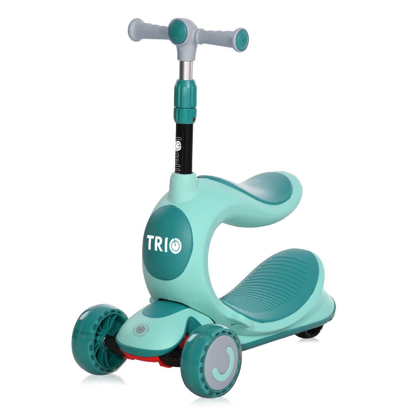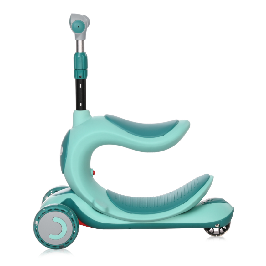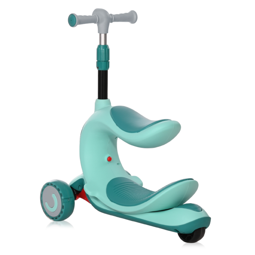 Иновативен дизайн,Удобна и безопасна благодарение на стабилните колела и висококачествената пластмаса с противохлъзгащи участъци,Светещи гуми,когато е със седалка, позволява по-добра стабилност за малкото дете и спомага за развитието на способността му да пази равновесие, като задвижването става посредством избутване с крачетата на детето,когато е без седалка – задвижването се извършва посредством избутване с едното краче и вече развитата способност на детето да балансира;,Подходяща за деца с различен ръст чрез регулиране на кормилото (3 позиции на регулиране: 72//77/83cm от пода),Лесна за съхранение и пренасяне,Интегрирана крачна спирачка за безопасност,Лесно придвижване,Висококачествените лагери ABEC-9 помагат на детето да се предвижва с голяма лекота,Удобни безопасни дръжки, непозволяващи приплъзване на ръчичката на детето///
