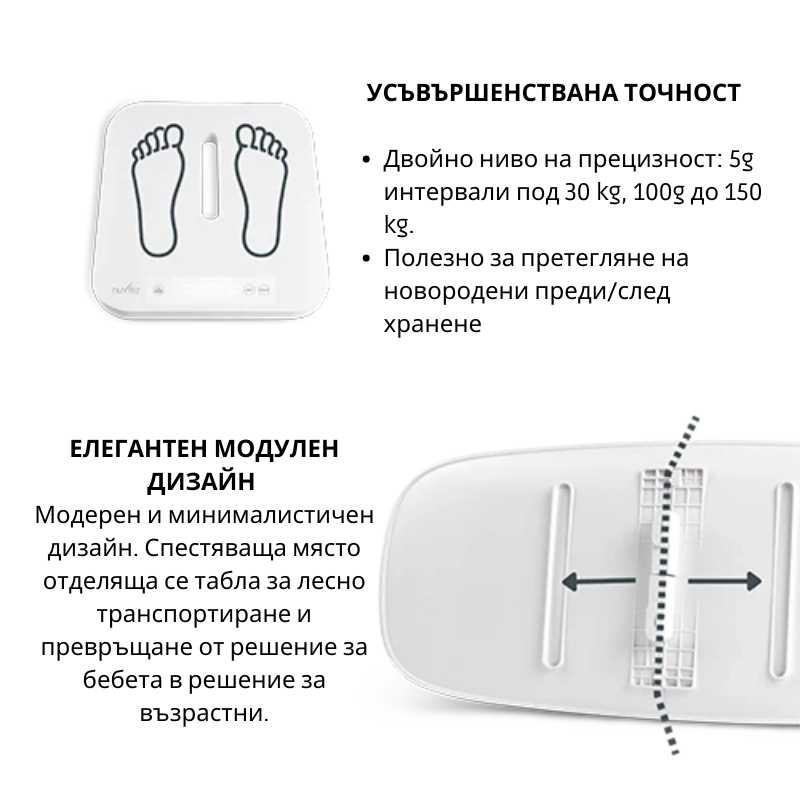 Везната продължава да следи теглото на майката, подпомагайки връщането към идеалното тегло по здравословен и естествен начин.