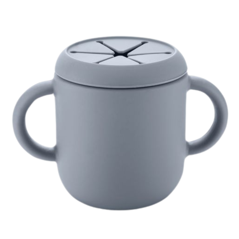 >    >  Детска посуда за хранене, Хранене  >  25053 Reer силиконова чаша 2в1 сива/синя