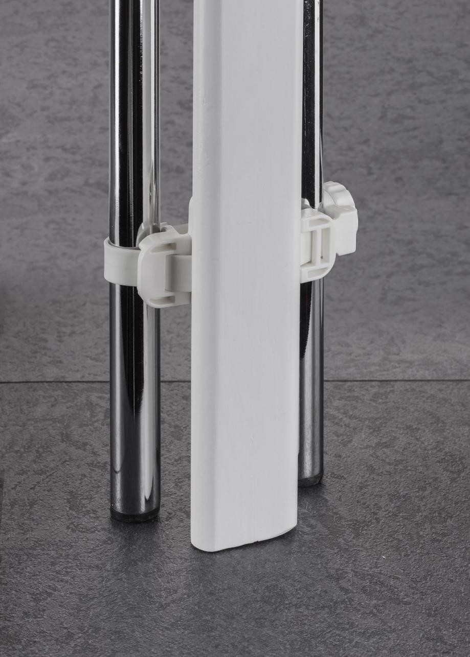 Индивидуално регулируемата гъвкава лента се адаптира към различни стълбищни парапети. Иновативна система, която дава възможност за лесно и сигурно закрепване, без да вреди на парапета.