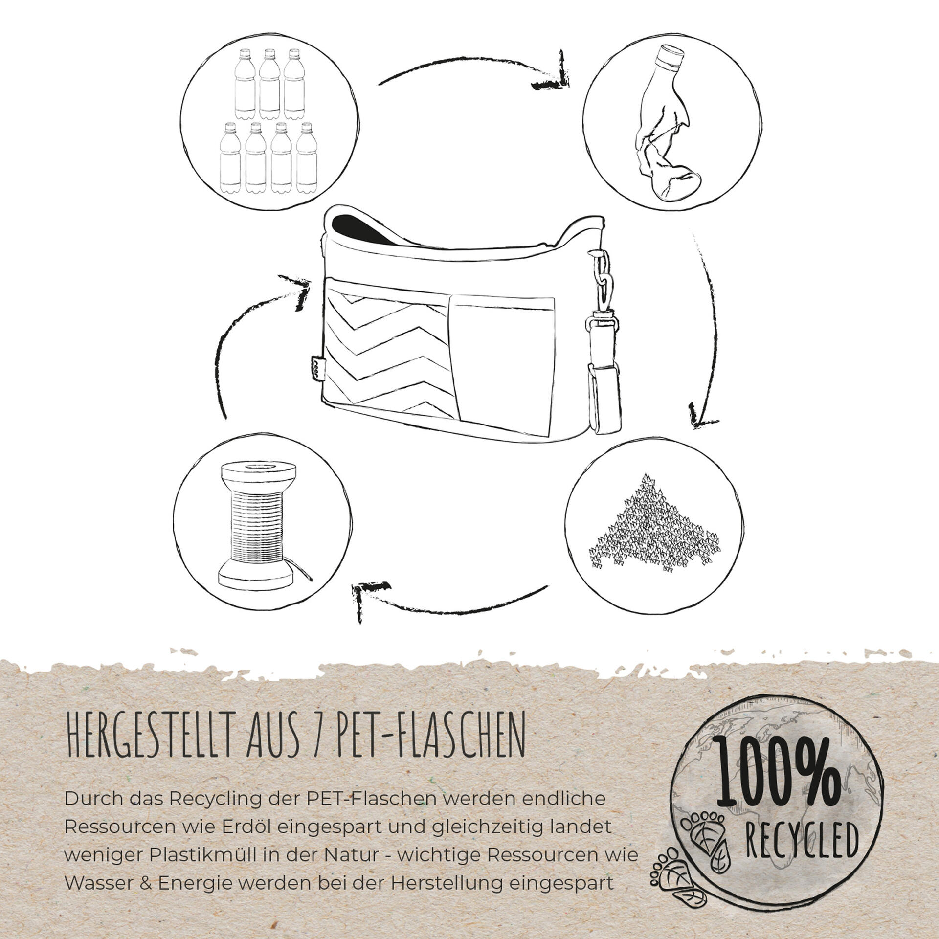 С нашия органайзер за количка Growing вие имате не само всичко необходимо за бебето по време на разходка, но и устойчив спътник – защото е направен от 100% рециклирани PET бутилки.