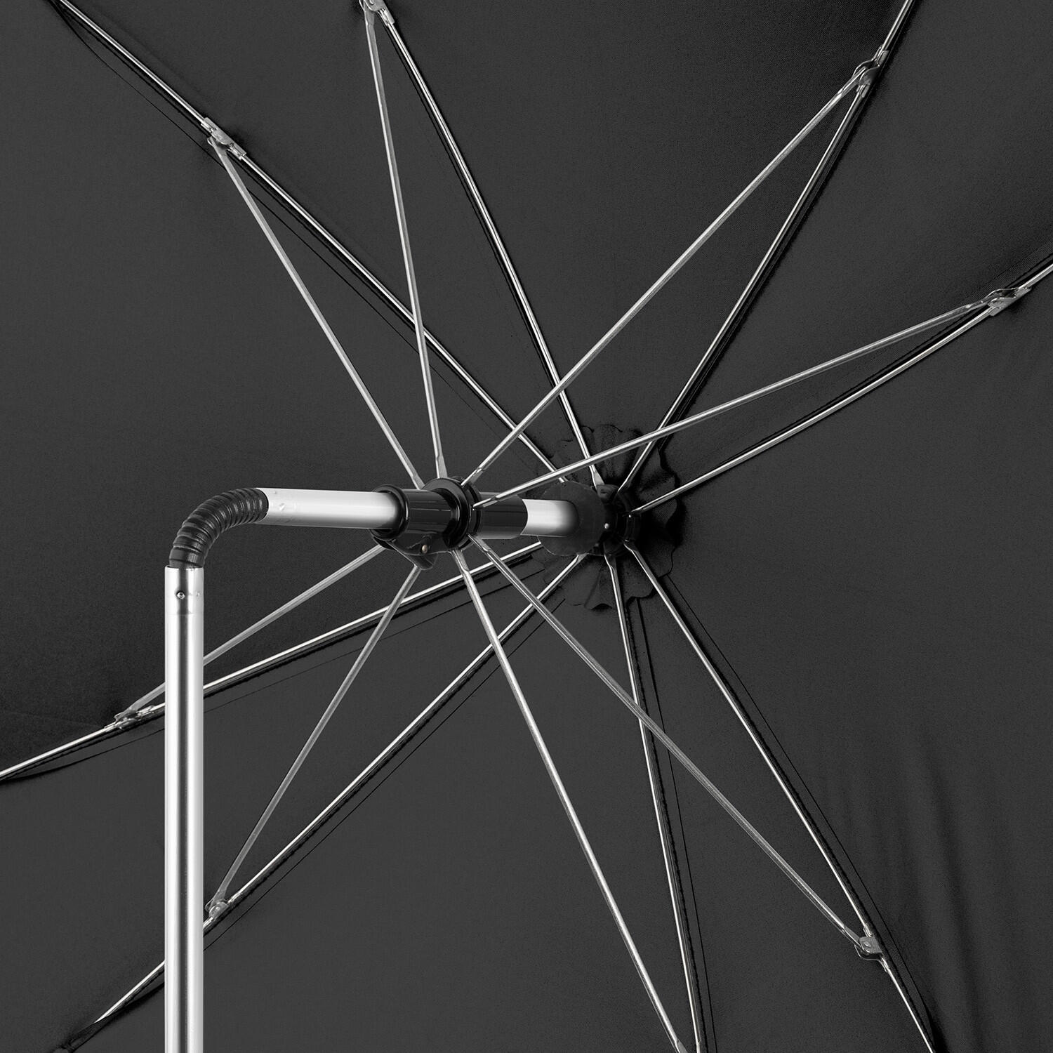 Чадърът може да се регулира лесно и удобно спрямо посоката на слънцето. Ставите на шията на лебеда при монтажа и под сянката, плюс въртящата се 180 ° функция при монтажа, ви позволяват да позиционирате чадъра перфектно, гарантирайки сянка, откъдето грее слънцето.