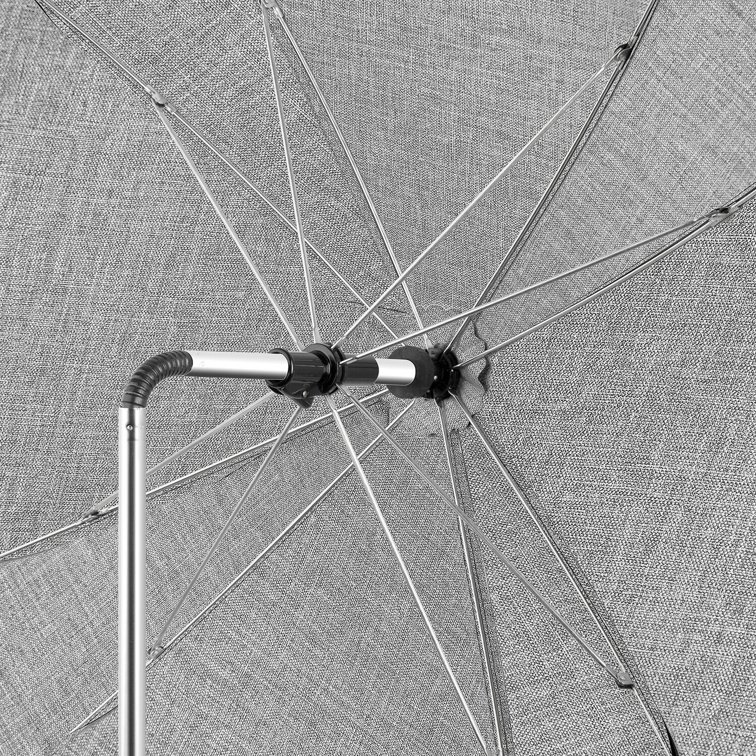 Чадърът може да се регулира лесно и удобно спрямо посоката на слънцето. Ставите на шията на лебеда при монтажа и под сянката, плюс въртящата се 180 ° функция при монтажа, ви позволяват да позиционирате чадъра перфектно, гарантирайки сянка, откъдето грее слънцето.