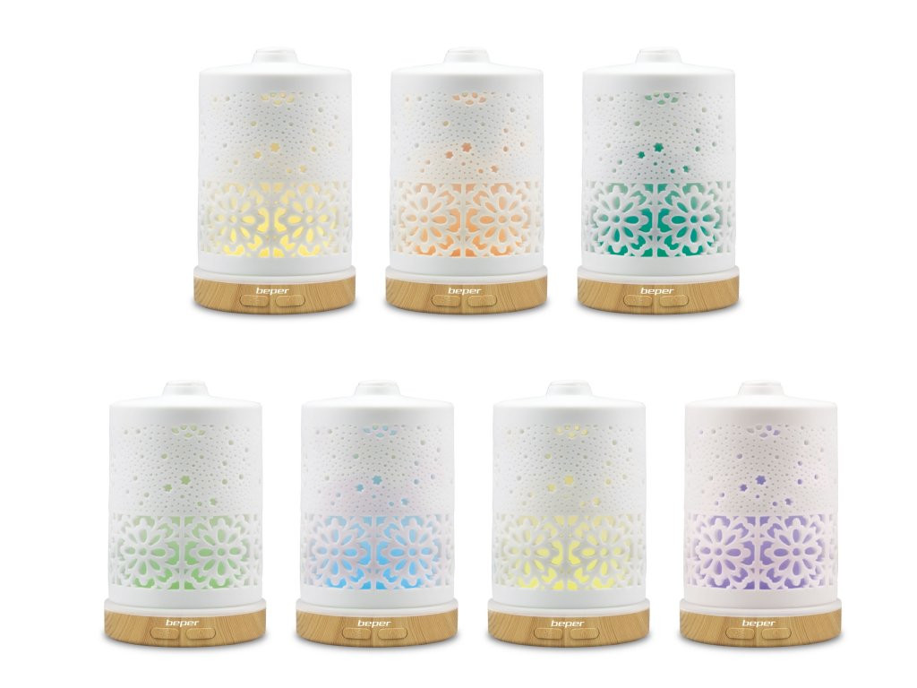 Има LED светлина в 7 цвят, които се сменят в непрекъсната вариация. Оборудван с бутон за избор на интензивност на студена пара, в непрекъснат режим или режим на прекъсвания, бутон за избор на един цвят. Автоматично изключване в случай на изчерпване на водата. Капацитет на резервоара 100ml. Включен USB кабел.