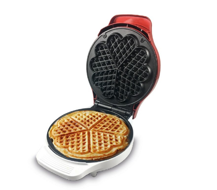 Този компактен и лесен за почистване гофретник е идеален за направата на 5 идеални вафли във формата на сърце. Има повърхност с незалепващо покритие, така че тестото да не залепва по време на готвене. Разполага с 2 индикаторни лампи; червена светлина при готвене и зелена светлина при достигане на температурата. Нехлъзгащи се крачета и навиване на кабела.