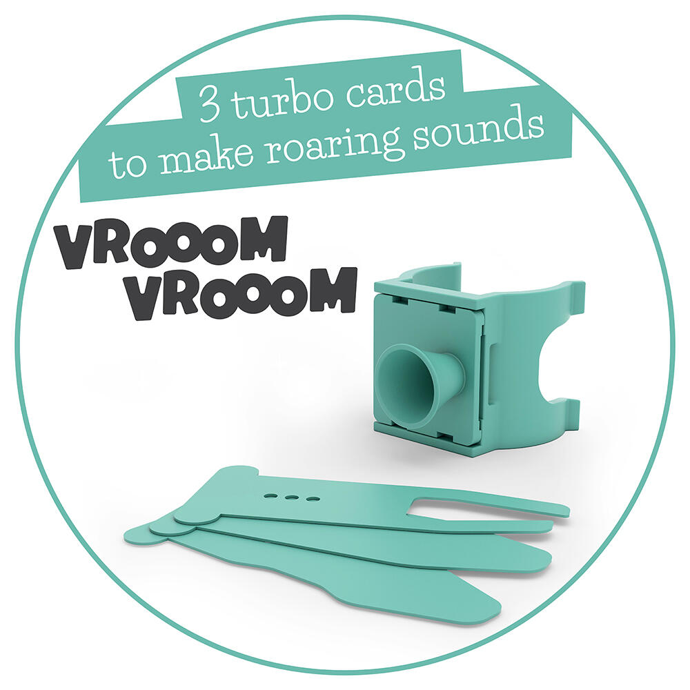 Само ппоставете Turbo Cards, за да издавате истински звуци на мотор, докато карате! БРЪМ, БРъЪММ! 3-те включени турбо карти издават ревящи звуци на предната вилка – БРЪМ, БРъЪММ! Турбо картите имат различни настройки за регулиране на нивото на звука.