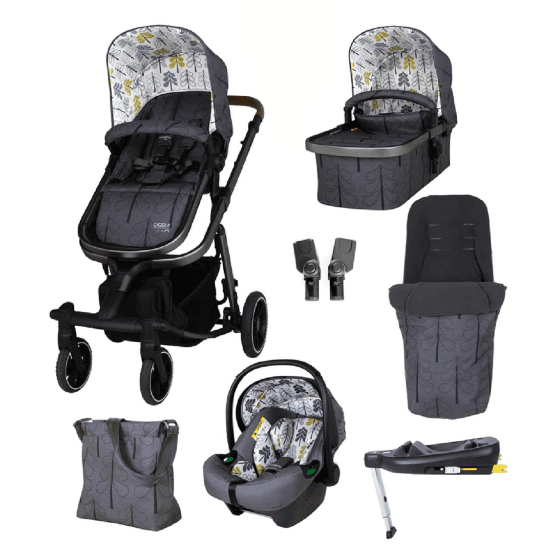 Giggle Trail 3в1 има гуми за различни терени, голям кош и седалка, която издържа до 20 кг (приблизително 4 години). Този компактен комплект включва шаси с 4 колела, кош за новородено, седалка(летен кош), дъждобран и столче за кола Tote i-Size 0+ с адаптери за монтаж върху шасито.