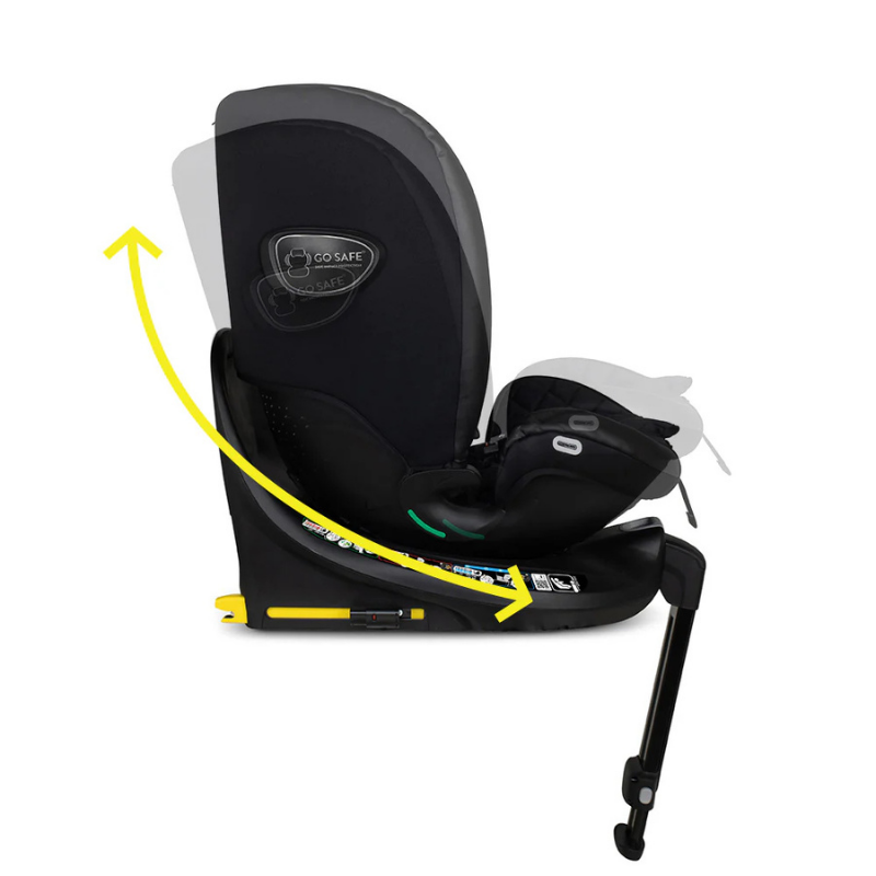 • Разширено обърнато назад до 105 см режим с лесно завъртане; Монтаж с isofix и опорен крак; Обезопасяване с 5точков предпазен колан на столчето