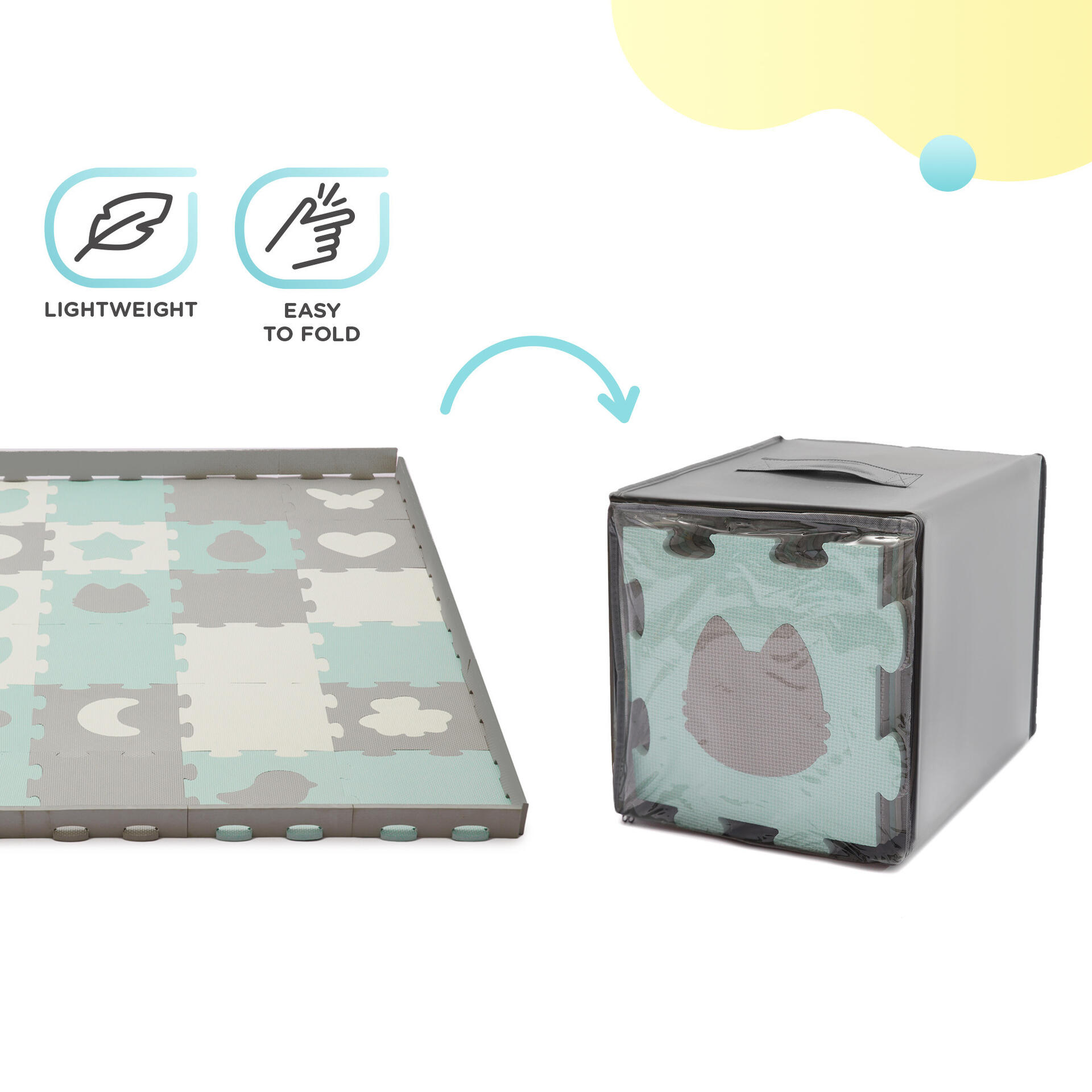 Частите на пъзела на постелките LUNO са изключително леки и удобни, а транспортирането им е улеснено от включената чанта. Така че, където и да отидете, вашето дете може да се чувства като у дома си!