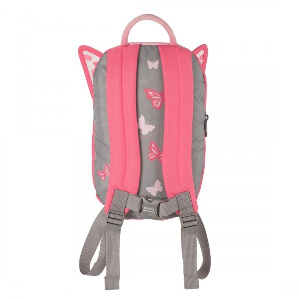 Етикет за името и адреса на детето. Горна дръжка. Основното отделение се затваря с цип. Регулируеми подплатени презрамки. Закопчаващ се колан за гърдите, за да се предотврати падането на раницата. В съответствие с изискванията на директива GPSD (2001/95/EC)