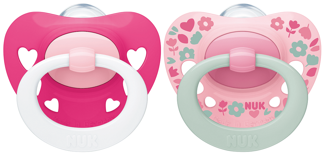 NUK Биберон залъгалка силикон 6-18 мес. 2 бр. Signature + кутийка за съхранение и стерилизация в микровълнова – Момиче