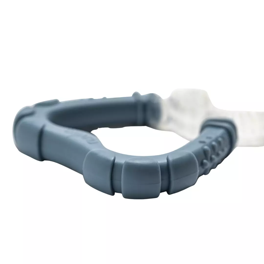 Той има различни повърхности и дебелини от мека гума за масаж с променлива интензивност, полезен за насърчаване на правилното развитие на дъвчене.